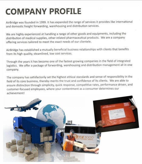 AirBridge was founded in 1999. it has expanded   the range of services it provides like international   and domestic freight forwarding, warehousing  and   distribution services.